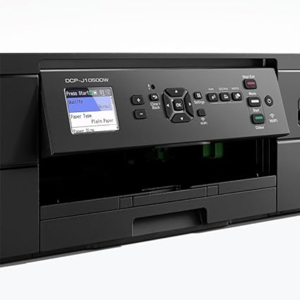 La impresora Brother DCP-J1050DW es un dispositivo multifuncional que ofrece funciones de impresión, copiado y escaneo. Este modelo utiliza tecnología de inyección de tinta y es compatible con formatos de papel A4. Su sistema de impresión permite realizar copias a color y monocromo. El dispositivo cuenta con una pantalla LCD que facilita la navegación a través de sus opciones. La conectividad incluye puertos USB y soporte para conexión inalámbrica a través de Wi-Fi, lo que permite imprimir desde dispositivos móviles y ordenadores sin necesidad de un cable. Es compatible con sistemas operativos Windows y Mac. El DCP-J1050DW cuenta con un sistema de cartuchos de tinta que se pueden reemplazar de forma independiente. La capacidad de los cartuchos varía según el modelo, permitiendo seleccionar cartuchos de mayor rendimiento si es necesario. Este modelo también incorpora funciones de escaneo a color y tiene la capacidad de enviar documentos escaneados a través de correo electrónico o a nubes de almacenamiento. La impresora permite realizar impresión automática a doble cara, lo que puede reducir el consumo de papel. La velocidad de impresión se mide en páginas por minuto, con valores específicos según el tipo de impresión. Ofrece opciones de configuración para diferentes necesidades de impresión, y está diseñada para imprimir documentos y fotos en diferentes tipos de papel. El dispositivo incluye un software de instalación que permite realizar configuraciones adicionales y actualizaciones.
