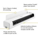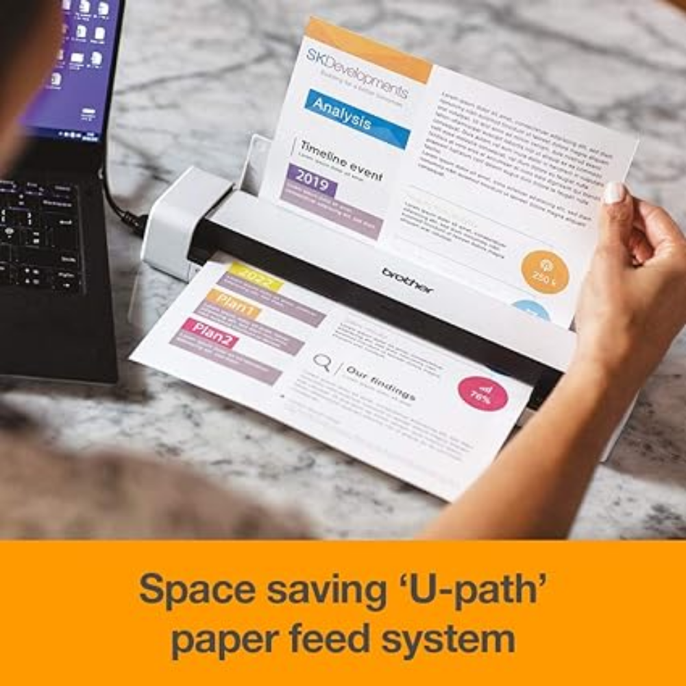 El escáner compacto doble cara A4 Brother DS740D ofrece la capacidad de escanear documentos a doble cara de manera simultánea, lo que permite una mayor eficiencia en el manejo de documentos. Este dispositivo soporta documentos de hasta tamaño A4 y puede escanear en diferentes formatos, incluidos PDF y JPEG. La velocidad de escaneo es de hasta 25 páginas por minuto en color y en blanco y negro, lo que facilita la digitalización rápida de documentos. El escáner cuenta con una bandeja de alimentación automática que tiene una capacidad de hasta 20 hojas, lo que favorece la automatización del proceso de escaneo. Es compatible con sistemas operativos como Windows y macOS, lo que facilita su integración en diferentes entornos informáticos. Además, incluye interfaces USB 2.0 y USB 3.0, permitiendo la conexión a computadoras y otros dispositivos de almacenamiento. Dispone de funciones como la detección de doble alimentación, el ajuste automático de color y la opción de escanear a correo electrónico y a dirección de red. Este modelo es ligero y portátil, lo que permite su uso en diferentes ubicaciones. La alimentación de documentos puede variar según el tipo de papel utilizado, y el escáner admite documentos de diversos grosores, desde papel normal hasta tarjetas plásticas. Este escáner está diseñado para facilitar el proceso de digitalización de documentos mediante tecnología de escaneo de alta precisión.