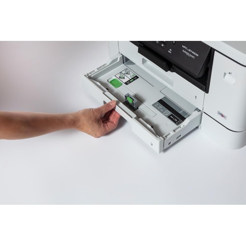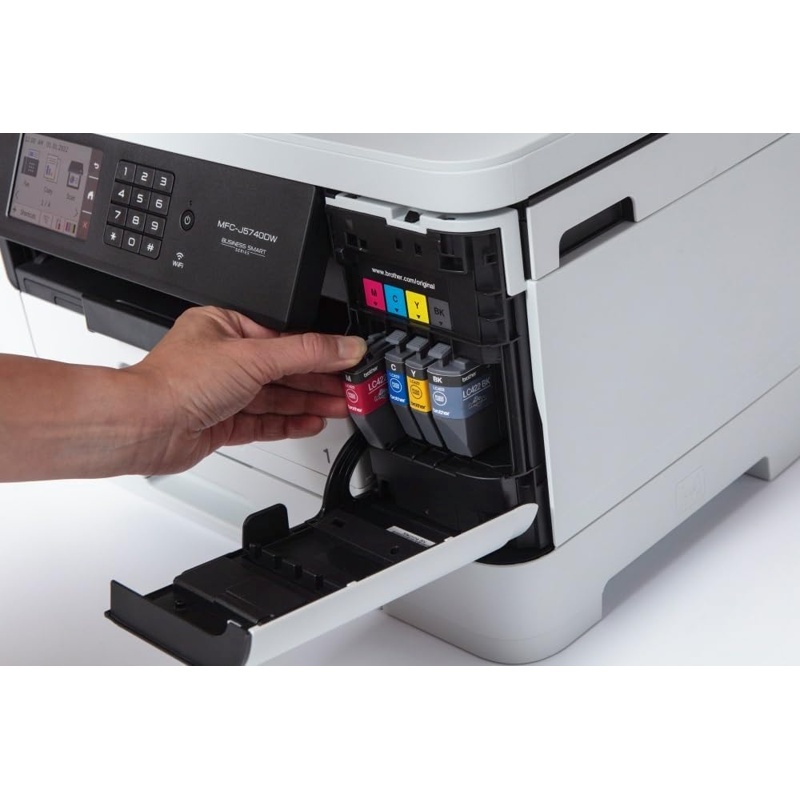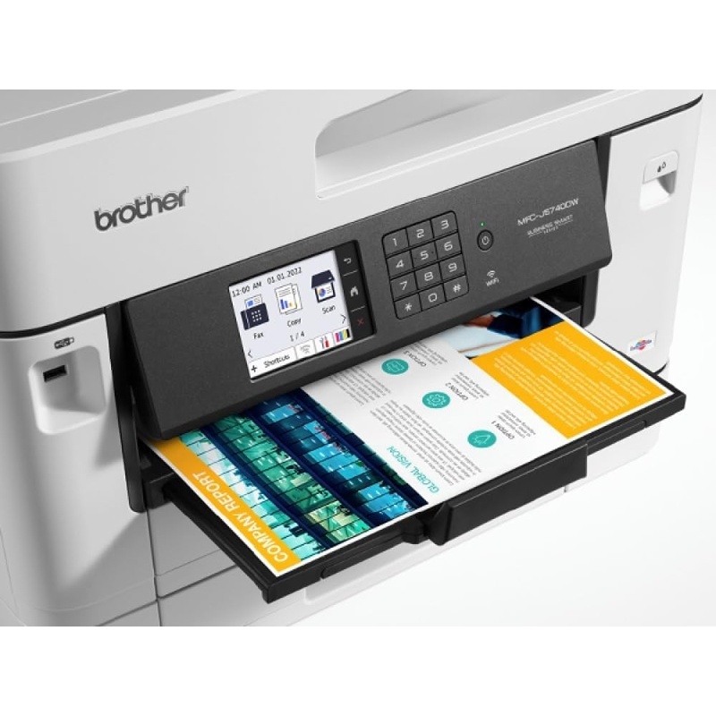 La Impresora Multifunción Tinta 28 pág/min A3 Brother MFC-J5740DW es un dispositivo que cuenta con funciones de impresión, copia, escaneo y envío de fax. Tiene una capacidad de impresión a color y en blanco y negro. Su velocidad de impresión es de hasta 28 páginas por minuto en formato A4. Admite tamaños de papel hasta A3, lo que permite trabajar con documentos más grandes. La conectividad incluye USB, Ethernet y Wi-Fi, facilitando la conexión a distintos dispositivos. También es compatible con aplicaciones móviles para impresión desde smartphones y tablets. Este modelo incorpora un sistema de tinta de gran capacidad, que puede reducir la frecuencia de recambio. Su alimentador automático de documentos permite gestionar varios documentos en una sola acción. La resolución de impresión alcanza hasta 4800 x 1200 dpi, lo que se traduce en una calidad detallada en los documentos impresos. El sistema operativo compatible abarca varias versiones de Windows y Mac OS. Esta impresora está diseñada para integrarse en entornos de trabajo donde se necesite versatilidad y funcionalidad en el manejo de documentos. Incluye una pantalla táctil para facilitar la navegación y el acceso a las diversas funciones disponibles. Además, cuenta con soporte para el uso de software de gestión documental.