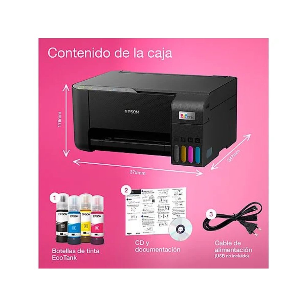 La impresora Epson EcoTank ET-2814 utiliza tecnología de inyección de tinta térmica y cuenta con un sistema de tanque de tinta recargable que permite la impresión de documentos en color. Dispone de conectividad Wi-Fi, lo que permite la impresión inalámbrica desde dispositivos móviles y computadoras. La velocidad de impresión es de hasta 10,5 páginas por minuto para documentos en negro y 5 páginas por minuto para impresiones en color. El ciclo de trabajo mensual máximo es de 3,000 páginas. Tiene una resolución de impresión de hasta 4,800 x 1,200 ppp en papel fotográfico. Sus dimensiones son de 37.5 cm de ancho, 34.7 cm de profundidad y 12.5 cm de alto. El peso total del equipo es de aproximadamente 3.9 kilogramos. Los cartuchos de tinta son de gran capacidad, permitiendo impresiones de alta cantidad sin necesidad de recarga frecuente. Es compatible con diversos sistemas operativos, incluyendo Windows y Mac OS. La EcoTank ET-2814 está diseñada para manejar diferentes tipos de papel, incluyendo papel fotográfico, papel mate y papel común. Cuenta con un panel de control que permite la fácil navegación por las funciones de impresión y copia.