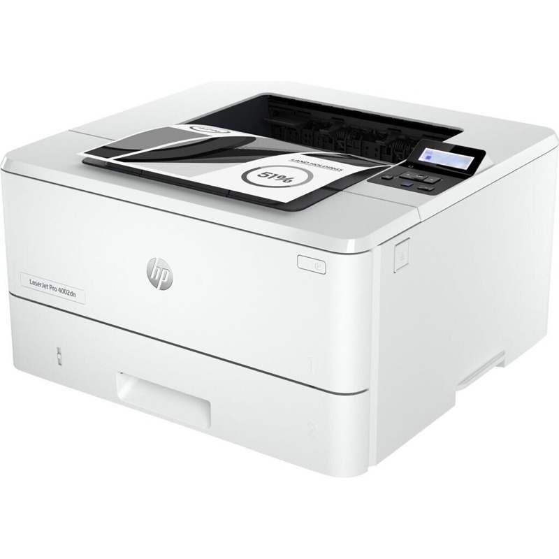 La impresora láser monocromo HP LaserJet Pro 4002dn cuenta con una velocidad de impresión de 40 páginas por minuto. Soporta impresión en formato A4 y presenta la funcionalidad de impresión a doble cara automática (dúplex). La conectividad incluye un puerto Ethernet y un puerto USB, permitiendo la conexión a redes y dispositivos. Además, es compatible con sistemas operativos Windows y Mac. El ciclo de trabajo mensual recomendado es de hasta 80,000 páginas, lo que permite un uso continuo en entornos de impresión variados. Incorpora una bandeja de entrada con capacidad para 250 hojas y una bandeja de salida con capacidad de 150 hojas. También posee una memoria interna de 256 MB que permite manejar trabajos de impresión más complejos. El manejo de papel admite diversos tipos y tamaños, incluyendo papeles normales y de oficina. Esta impresora utiliza cartuchos de tóner específicos de la serie HP 30A, ofreciendo un rendimiento estándar de hasta 3,000 páginas por cartucho. La instalación y configuración se pueden realizar a través de un asistente de instalación, facilitando el proceso inicial para el usuario.